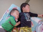 | しゃぼん玉 上手に吹けたよ。 きれいだね! | さつまいも掘り 畑の中のお宝発見!! おやつにみんなで食べたんだ。 | すいか割り そっちじゃないよー!! | かわいい寝顔 仲良くお昼寝タイム Zzz・・・ |